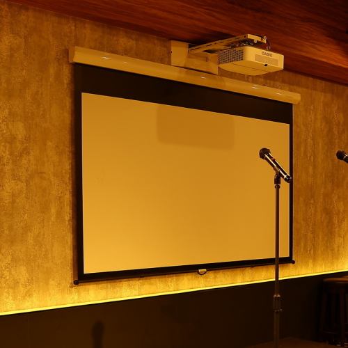 【大型プロジェクター】【ステージ】【マイク】完備!その他、宴会にうれしい備品をご用意しております。